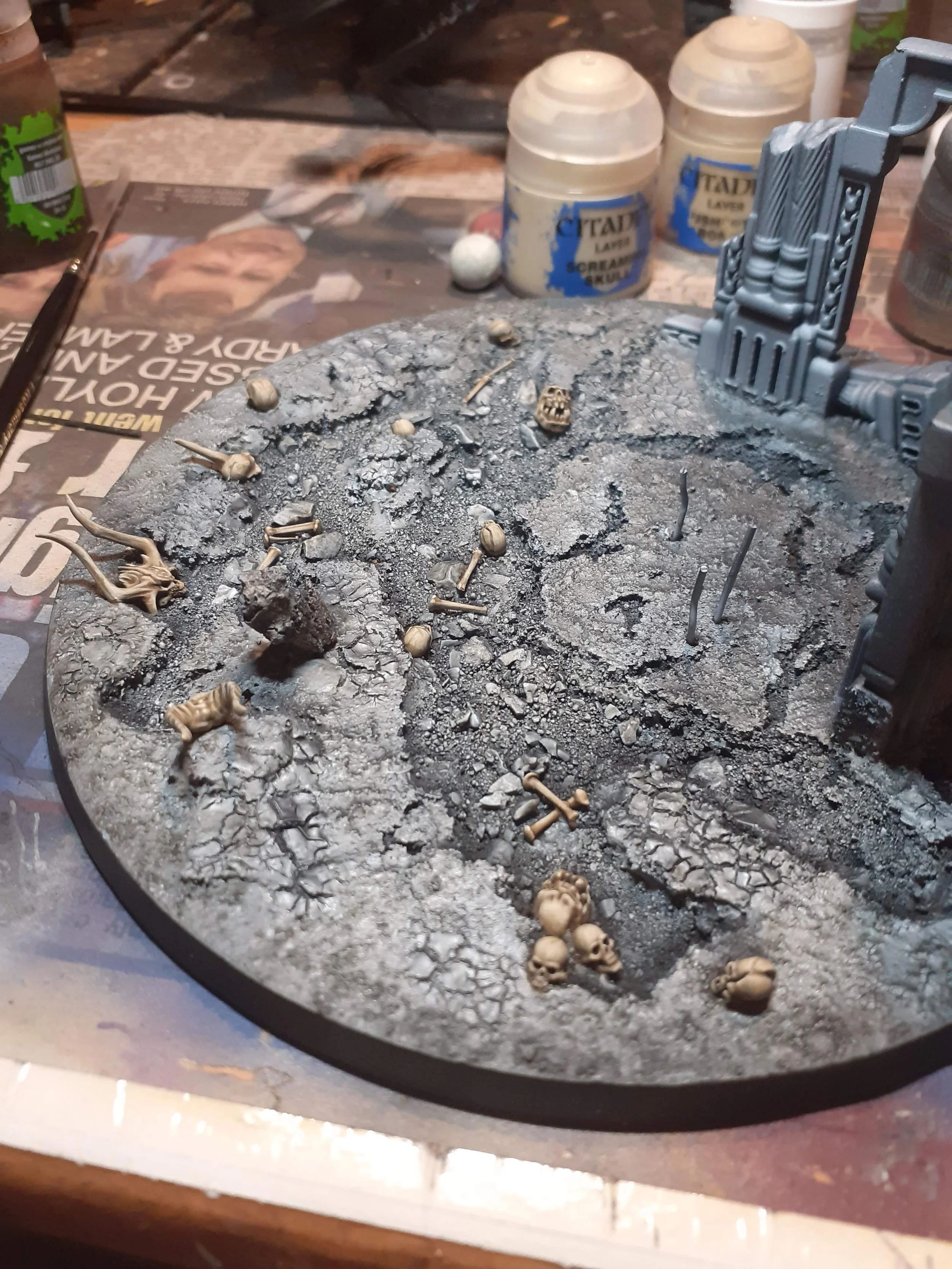 This example of custom basing illustrates the multiple stages and materials used to construct the final piece. While this base was made to be used in game, while also being a stand-out piece in its own right, many custom bases can be more sculptural and designed purely for display.